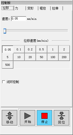 (5)支持多種控制方式,包括開環(huán)等速位移及等速力、等速應(yīng)力等多種閉環(huán)控制方式;并在高級操作者調(diào)試閉環(huán)參數(shù)過程中給出標(biāo)準(zhǔn)參考曲線,從而使用戶實際觀察到各參數(shù)對閉環(huán)效果產(chǎn)生的影響。